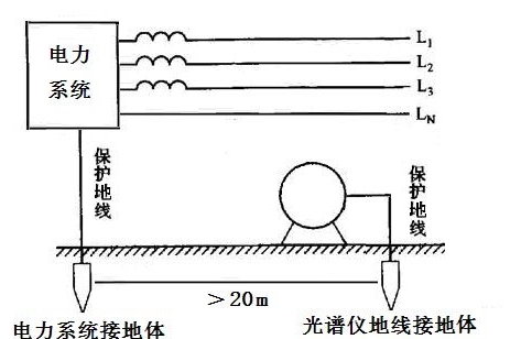 1.2 直讀光譜接地線要遠離大功率電力或電氣設(shè)備的接地體,所設(shè)的接地體距離工頻低壓交流供電系統(tǒng)的接地體不應(yīng)小于20米。